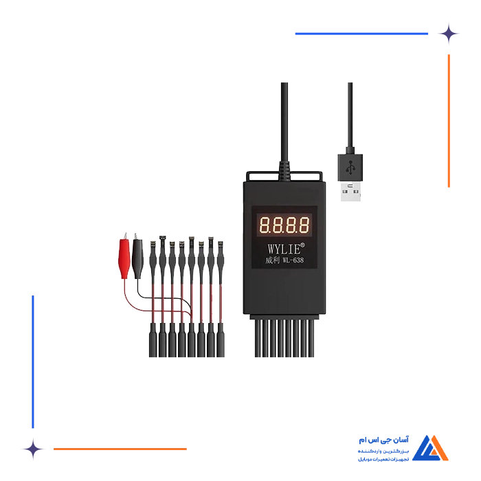 - کابل پاور و بوت تست WL-638 PRO: کابل تغذیه و تست برای آیفون و بسیاری از مدل های اندروید، با ورودی USB و مناسب عیب یابی و بررسی جریان