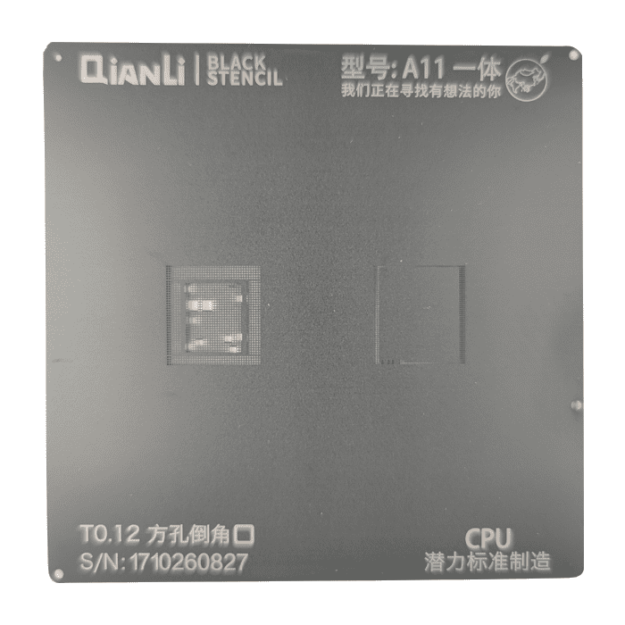 شابلون آیفون دو بعدی QIANLI A11 PLUS مناسب آی سی گوشی های موبایل و مخصوص تعمیرات قطعات و آی سی های BGA انواع گوشی های موبایل می باشد. شابلون ها بر اساس آی سی ها انواع مختلفی دارند و برای هر آی سی باید از شابلون مخصوص آن استفاده شود.