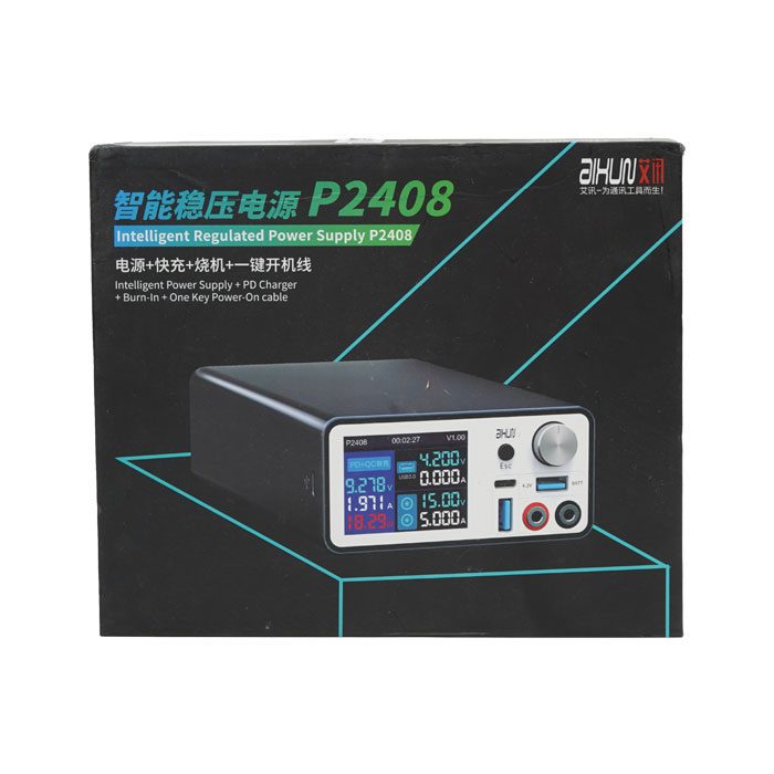 منبع تغذیه AIXUN P2408 با قابلیت شورت کیلر، یکی از پیشرفتهترین منابع تغذیه هوشمند موجود در بازار است که برای تشخیص و تعمیر انواع بردهای موبایل، مخصوصاً آیفون 6 تا 15 پرو مکس و دستگاههای اندرویدی طراحی شده است. این منبع تغذیه علاوه بر ارائه جریان و ولتاژ قابل تنظیم، امکاناتی چون شارژ سریع، شناسایی خودکار پروتکلهای شارژ، و مانیتورینگ لحظهای ولتاژ و جریان را فراهم میکند.