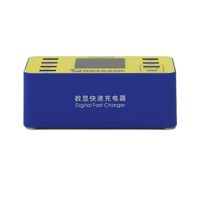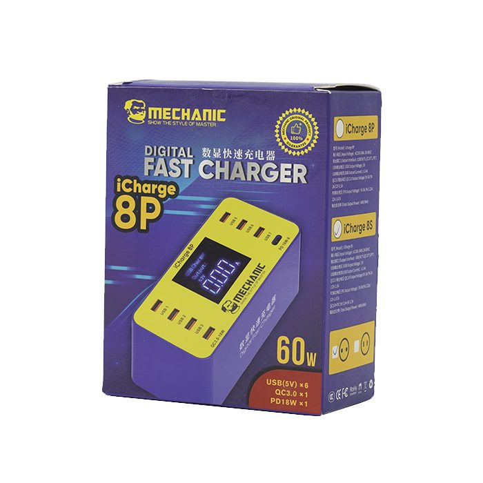 مولتی شارژر مکانیک icharge 8S – یک دستگاه قدرتمند و کارآمد که به شما این امکان را میدهد که چندین دستگاه را به طور همزمان شارژ کنید. مولتی شارژر و تستر MECHANIC دارای 6 پورت USB و یک پورت فست شارژ است. این مولتی شارژر با ویژگیهای منحصر به فرد خود، برای تعمیرات موبایل، خانه، محل کار، سفر و هر جای دیگری که نیاز به شارژ همزمان چند دستگاه دارید، بسیار مناسب و کاربردی است. iCharge 8s با استفاده از فناوری هوشمند، قابليت حفاظت از دستگاههای الکترونيکي در برابر جريان بالاتر، ولتاژ پائين و آسیبهای دیگر را به بهترین نحو فراهم میکند. این مولتی شارژر با قدرت خروجی 8 آمپر، به شما امکان میدهد تا دستگاههای خود را با سرعت بالا و به طور همزمان شارژ کنید.