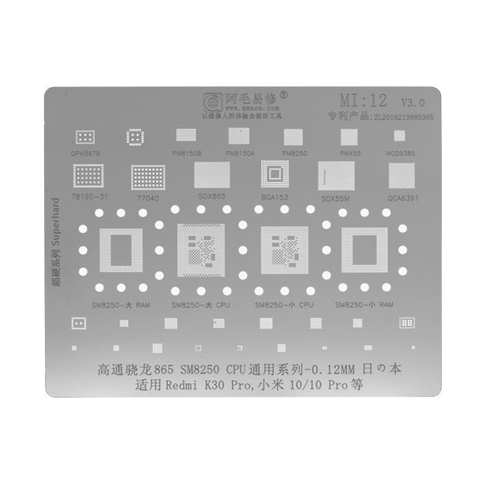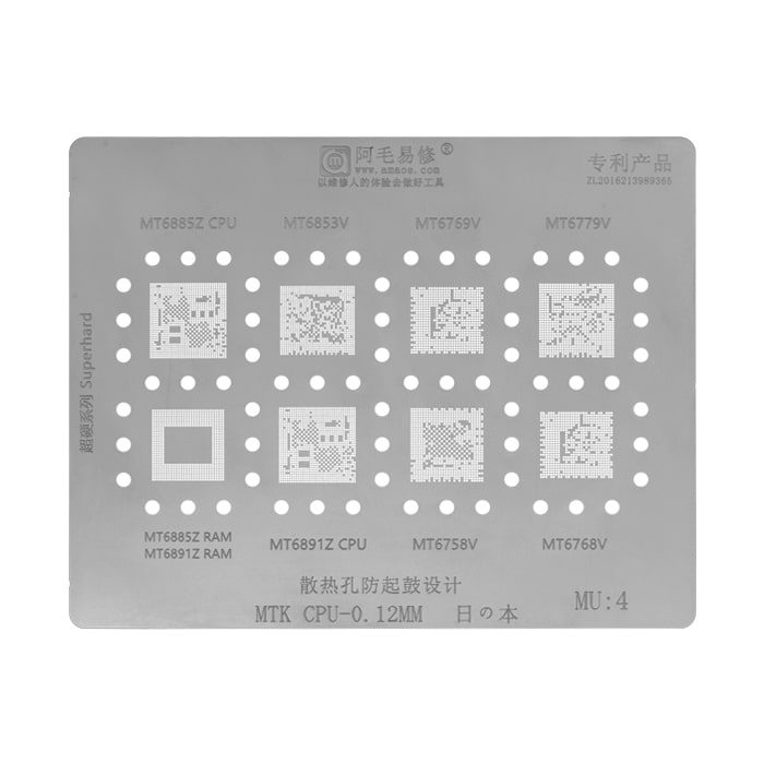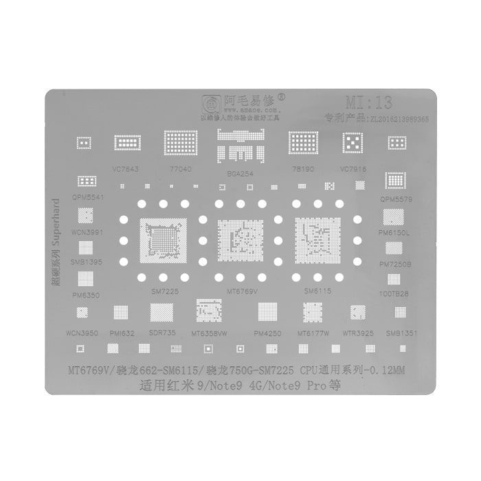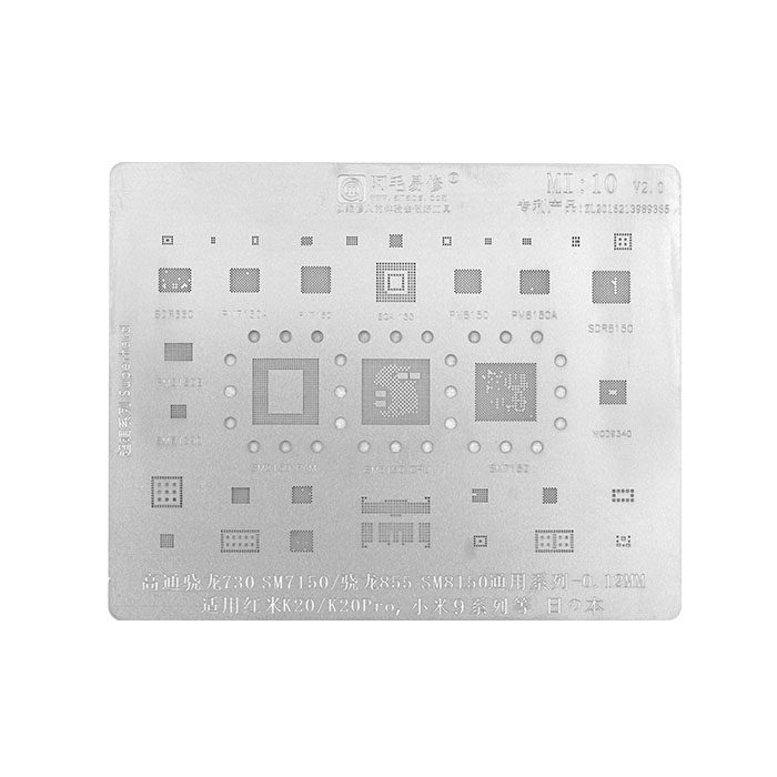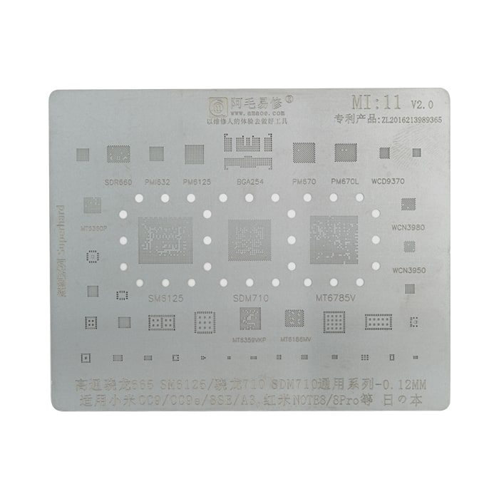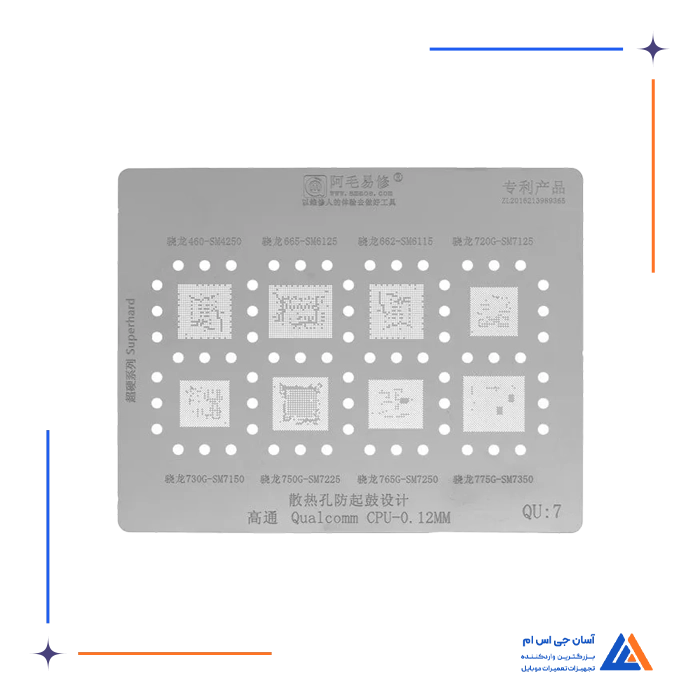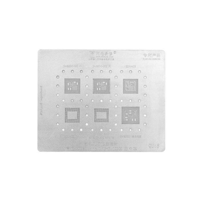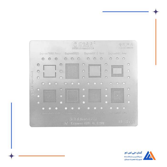 - شامل انواع شابلون های مخصوص ریبال و شابلون های IC برای مدل های مختلف موبایل و بردها، مانند شابلون EMMC:1 و شابلون همه کاره یونیورسال که برای ریبال قطعات BGA و IC کاربرد دارند.