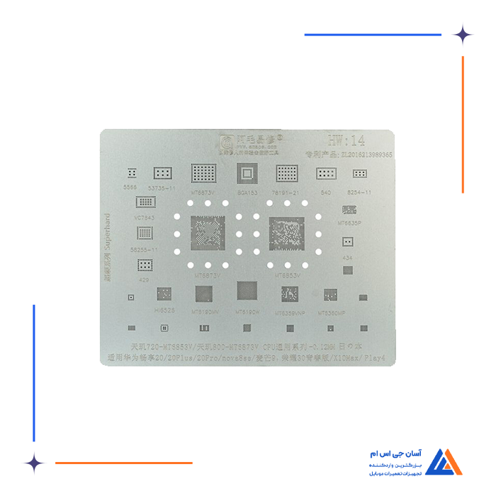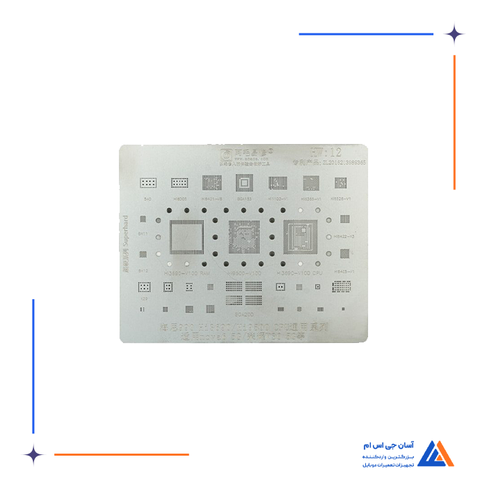 - شامل انواع شابلون های مخصوص ریبال و شابلون های IC برای مدل های مختلف موبایل و بردها، مانند شابلون EMMC:1 و شابلون همه کاره یونیورسال که برای ریبال قطعات BGA و IC کاربرد دارند.